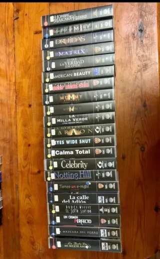 ¡Colección variada de películas en VHS! Están en buen estado y listas para disfrutar. No están todas disponibles, algunas ya han sido vendidas. Las fotos se actualizan los domingos por la tarde/noche. Las cintas no han sido probadas por lo que no se garantiza su funcionamiento. 1 película - 3 euros. 5 películas - 13 euros. 10 películas - 25 euros. Algunas cajas están en estado regulero por lo que se pueden dejar más baratas. Pregunta sin compromiso.