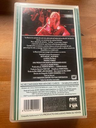 VHS de The Rose, ese clásico de 1979 donde Bette Midler brilla con luz propia en el papel de una cantante de rock en caída libre. Dirigida por Mark Rydell, la película captura la intensidad de la fama y sus sombras, con Alan Bates como el mánager que intenta mantenerla a flote. Cinta en buen estado, lista para revivir este drama con alma y mucho, mucho rock. Ideal para nostálgicos y amantes del cine con garra.