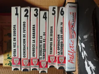 Colección de 6 cintas VHS del Athletic Club de Bilbao. - Otra vez en Europa - Generación de Futuro - Aparece la Gabarra - El Doblete de la Temporada 83-84 - Tiempos de Sequía - La Operación Retorno: Los Años 70 - Un siglo de historia