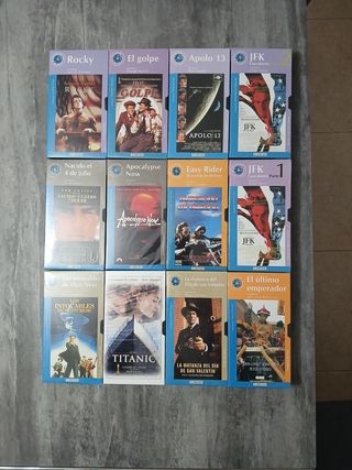 Lote de 27 películas en VHS, 8 de ellas infantiles. Están en buen estado, algunas con señales normales de uso. - Incluye títulos como Titanic, Braveheart, El Coyote, y más. - Perfecto para coleccionistas de VHS o amantes del cine clásico.