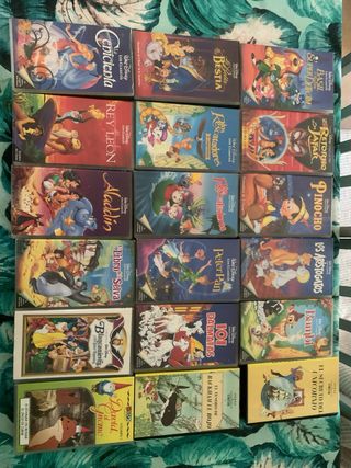 Colección de películas clásicas de Disney en formato VHS. Revive la magia de estos entrañables títulos. - La Cenicienta - La Bella y la Bestia - El Rey León - Aladdín - Peter Pan - Blancanieves y los Siete Enanitos - 101 Dálmatas - Bambi - El Libro de la Selva - Los Rescatadores - El Retorno de Jafar - Pinocho - Los Aristogatos - Basil, el ratón superdetective - David, el Gnomo - El Tesoro de Rackham el Rojo - El Secreto del Unicornio