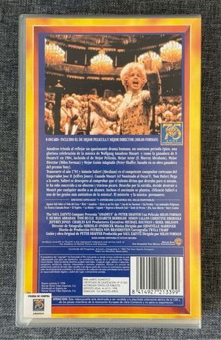 VHS AMADEUS. Edicion Especial Ganadoras de Oscar WARNER BROS. 75 ANIVERSARIO Para coleccionistas
