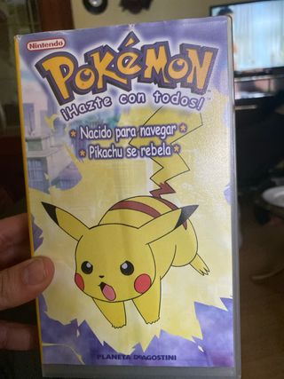 Película de Pokémon en formato VHS. - Título: ¡Hazte con todos! - Incluye los episodios: Nacido para navegar y Pikachu se rebela. - Distribuido por Planeta DeAgostini.