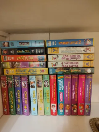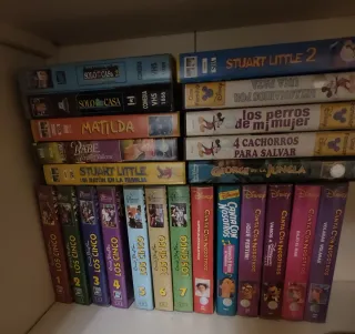 Colección de películas infantiles en formato VHS. Incluye títulos como Solo en Casa, Matilda, Babe, Stuart Little y varios de la saga Los Cinco, además de películas de Disney. - Formato: VHS. - Idiomas: Español