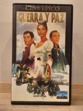 Película clásica Guerra y Paz en formato VHS. Colección Cine Épico. - Protagonizada por Audrey Hepburn, Henry Fonda y Mel Ferrer. - Dirigida por King Vidor. - Con cuadernillo interior con fotos e info de la película Revisada y rebobinada.