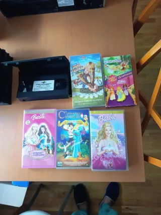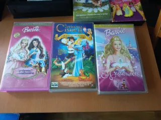 Colección de cinco películas infantiles en formato VHS. - Barbie: La princesa y la costurera - Barbie: El cascanueces - La princesa Cisne III - Barbie: Las 12 princesas bailarinas - Barbie: El secreto de las hadas