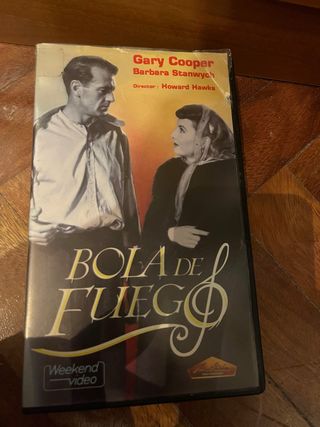 Película clásica Bola de Fuego en formato VHS. - Portada con Gary Cooper y Barbara Stanwyck. - Dirigida por Howard Hawks.