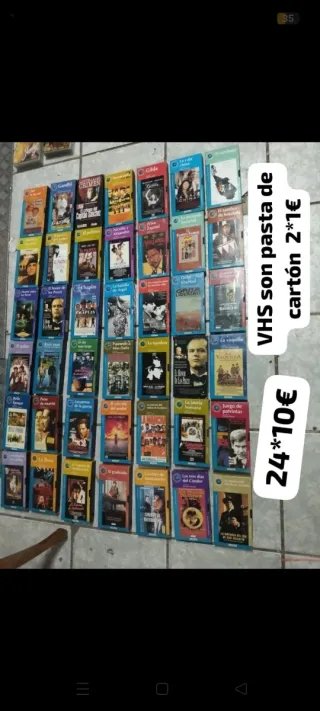 2*1€ oferta hasta el día unoGran colección de cintas VHS de pasta dura. Hay muchísimos títulos para elegir. Tengo dos almacenes llenos de cosas de segunda mano puedes venir cuando quieras puedes elegir muchísimas cosas y te lo pongo todo muy barato en especial los sábados por la mañana pregúntame cualquier día cualquier hora siempre estoy operativo sobre todo en el whatsapp ahí contactamos rápido si te das cuenta en la foto pone mi teléfono