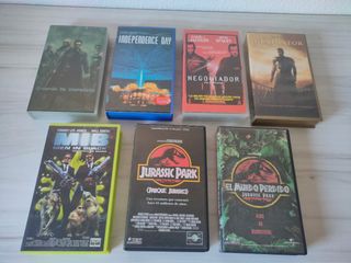 Colección de 10 películas en formato VHS. - Negociador - Independence Day - Men in Black - Trilogía Star Wars - Gladiator - El Mundo Perdido: Jurassic Park - Jurassic Park Todas como nuevas y algunas de ellas en ediciones especiales. Más películas en mi perfil, combina como quieras y obtén descuento.