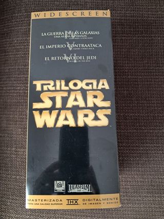 Vendo cuatro cintas VHS de Star Wars en perfecto estado. La trilogía original (Una nueva esperanza, El imperio contraataca y El retorno del Jedi) y El ataque de los clones. ¡Una colección ideal para cinéfilos! - Incluye las cuatro películas. - Están en perfecto estado. - Edición en español.