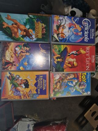Colección de 13 cintas VHS de películas clásicas de Disney. 90€ el lote o 10€ cada una. - El Rey León - Blancanieves - La Cenicienta - Peter Pan - Aladdin - Robin Hood - Tod y Toby - Casper - Los Aristogatos - El Jorobado de Notre Dame - El Libro de la Selva - Jumanji