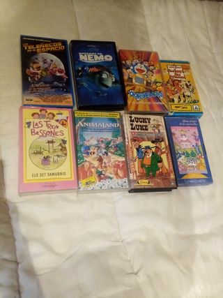 Peliculas 3 VHS, en familia, la aventura de Silvestre y Piolin, Carrotblanca y La bella y la bestia