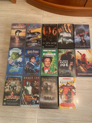 Películas en formato VHS - Liberad a Willy y Liberad a Willy 2 - El Sexto Sentido - Planeta de los Simios - Deep Blue Sea - Grinch - Harry Potter - Flubber y el Profesor Chiflado - Mi Gran Amigo Joe - Spider-Man - Jumanji - El Señor de los Anillos y más títulos