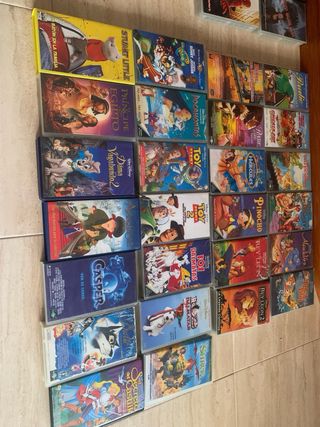 Colección de 19 cintas VHS de Walt Disney con películas clásicas y para toda la familia. - Incluye títulos como La Bella y la Bestia 2, Toy Story 2, Winnie the Pooh, Peter Pan, Chip y Chop, El Dragón Chiflado, Mickey y las Judías Mágicas, entre otros. - Variedad de títulos para disfrutar. - Formato VHS.