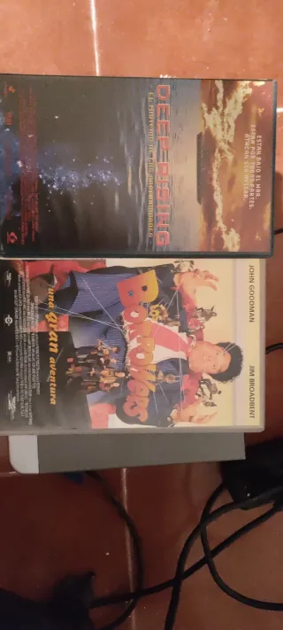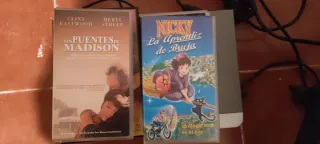 Dos películas en formato VHS, listas para disfrutar. 10€ por cinta, se hace descuento por cantidad - Deep Rising: El misterio de las profundidades. - Borowers: Una gran aventura. Chocolat, Aladin, los puentes de Madison, Nicky la pequeña bruja.