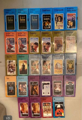 Lote de películas clásicos de cine en formato VHS de la colección la historia más grande jamás contada. Están NUEVAS. Muchas están con el precinto. Precio por unidad. Lote hago descuento - El Padrino (Partes I, II, III) - Casablanca - El Gatopardo - De entre los muertos (Vertigo) - Los Diez Mandamientos (Partes I, II) - Cleopatra (Partes I, II) - Espartaco (Partes I, II) - Ben-Hur - Gladiator - Mahoma, el mensajero de Dios (Partes I, II) - Genghis Khan - Hermano Sol, hermana Luna - Ran - Elizabeth - Farinelli - La Misión - Esquilache - Amadeus - El Patriota (Partes I, II) - Oliver - Fahrenheit 451