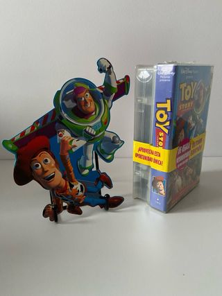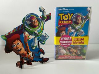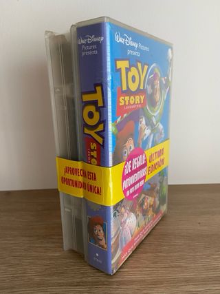 Película Toy Story coleccionista en formato VHS, precintada de fábrica. Articulo original de la época. Así luce una de las películas de dibujos más influyentes de la historia. Permite exponerse en vertical. Tiene un pequeño roto en el precinto (ver fotos). Incluye Patoaventuras de regalo.