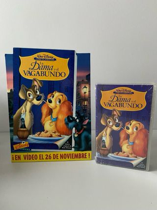 Película La Dama y el Vagabundo en formato VHS, precintada de fabrica. Incluye también su cartel promocional y el poster del lanzamiento. Háblame antes de comprar.