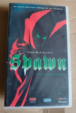 Película de animación Spawn basada en el cómic de Todd McFarlane. - Un nuevo guerrero emerge de las tinieblas. - Incluye logos de Manga Cómic, HBO y Todd McFarlane.