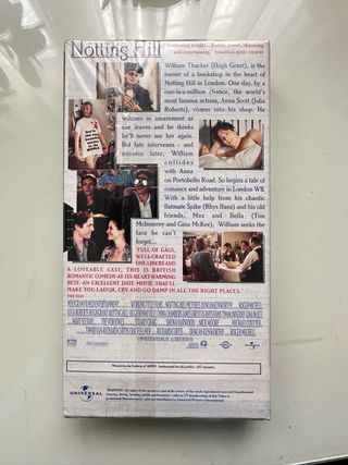 Película clásica de comedia romántica 'Notting Hill' en formato VHS. - Protagonizada por Julia Roberts y Hugh Grant. - Incluye subtítulos en inglés. Con precinto, totalmente nueva