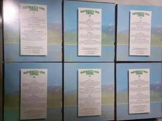 Completa colección de 12 volúmenes de Naturaleza Viva de Espasa. 24 cintas de video. Una enciclopedia visual sobre el mundo natural. - Títulos visibles: Volúmenes del 1 al 12. - Cubiertas ilustradas con imágenes de animales y ecosistemas.