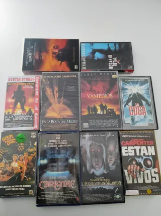⚠️ Precio NO negociable. Colección de cintas VHS de John Carpenter, ediciones comerciales, 4 de ellas bastante buscadas, 3 son ediciones de Videoclub. - Christine ( Ed Videoclub original RCA Columbia 1984) - Golpe en la Pequeña China ( Ed Videoclub original CBS Fox 1987 certificado de garantía) - Están Vivos (Laurenfilms) - El Pueblo de los Malditos ( Ed Videoclub original CIC 1996 cer. de garantía) - Asalto a la comisaría del distrito 13 (Manga) - La Cosa (1991) - En la Boca del Miedo - Vampiros - Fantasmas de Marte (Ed lenticular) - Desafío Total