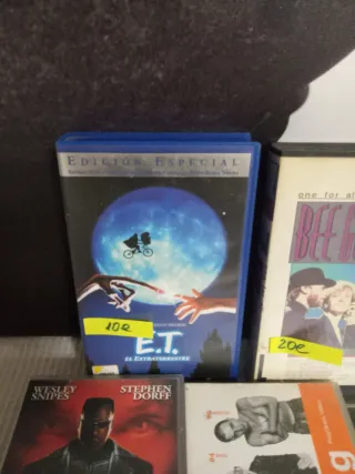 Lote de 5 películas en formato VHS, perfecto para coleccionistas. - E.T. el Extraterrestre 10 - Blade 10 - Alien, el octavo pasajero DVD 5 - Bee Gees Live 20 - Trainspotting 10 Lote 45 e W33