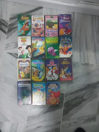 Precio negociable Colección de películas clásicas de Disney en formato VHS. - Aladdin - Pocahontas - Winnie the Pooh - Las Princesas - 101 Dálmatas - Mulán - La Dama y el Vagabundo - Fantasía 2000 - Dumbo - La Bella Durmiente - El Jorobado de Notre Dame 2 - Bichos - El Rey León - Toy Story - El Emperador y sus locuras - Pocahontas - Atlantis - Blancanieves y los Siete Enanitos - Pinocho - Tarzán - Peter Pan - Lilo & Stitch - Pesadilla Antes de Navidad