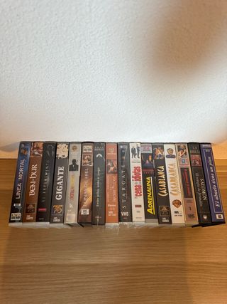 Colección de 16 cintas VHS en buen estado. Algunas películas incluidas son: Línea Mortal, Ben-Hur, El Experimento, Gigante, Lunas de Hiel, El Informe Pelicano, Stargate, Adrenalina, Casablanca, La Biblia, Salomón, y El Abuelo Tiene un Plan. - Variedad de géneros: acción, drama, comedia, clásicos, etc. - Formato VHS. - Idiomas: español e inglés. Preguntar precios por separado.