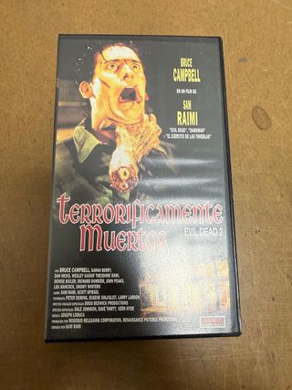 Película de terror Terroríficamente Muertos (Evil Dead 2) en formato VHS. - Protagonizada por Bruce Campbell. - Dirigida por Sam Raimi. - Incluye los títulos Evil Dead, Darkman y El Ejército de las Tinieblas en la carátula.