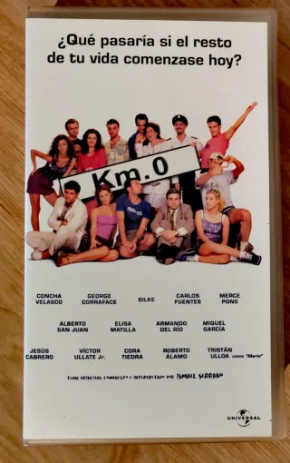 Película Km. 0 en formato VHS. - Título original: Km. 0 - Reparto: Concha Velasco, George Corraface, Silke, Carlos Fuentes, Merce Pons, Alberto San Juan, Elisa Matilla, Armando del Río, Miquel Garcia, Jesús Cabrero, Víctor Ullate Jr., Cora Tiedra, Roberto Álamo, Tristán Ulloa. - Tema principal: Conquista interpretado por Ismael Serrano. - Distribución: Universal. Nunca editada en Dvd