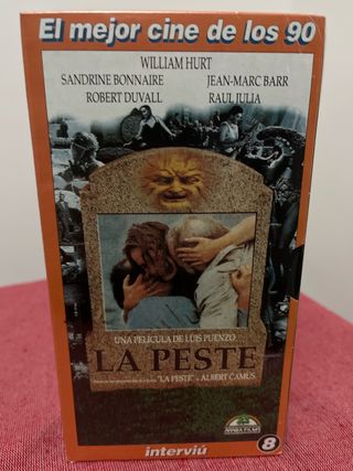 Película La Peste en formato VHS, parte de la colección El mejor cine de los 90. - Basada en la novela de Albert Camus. - Dirigida por Luis Puenzo. - Protagonizada por William Hurt, Sandrine Bonnaire, Robert Duvall, Jean-Marc Barr y Raúl Juliá.