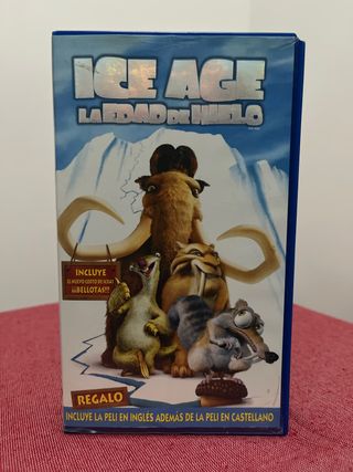 Pedido mínimo para enviar 4 euros .Película Ice Age: La Edad de Hielo en formato VHS. Incluye un corto extra de Scrat. - Incluye la película en inglés y en castellano. - Regalo incluido: ¡¡¡Bellotas!!!.