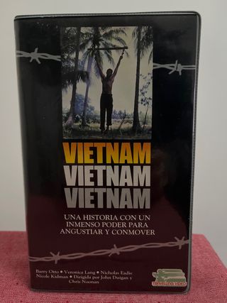 Película en formato VHS titulada Vietnam. - Título: Vietnam - Subtítulo: Una historia con un inmenso poder para angustiar y conmover - Reparto: Barry Otto, Veronica Lang, Nicholas Eadie, Nicole Kidman - Dirección: John Duigan y Chris Noonan - Sello: Travelling Video
