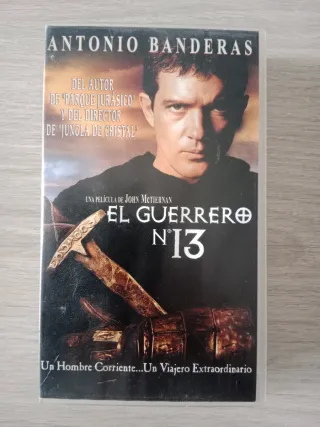 Película en formato VHS El Guerrero N°13 protagonizada por Antonio Banderas. - Dirigida por John McTiernan. - Trama basada en El autor de Parque Jurásico y El director de Jungla de Cristal. - Un Hombre Corriente... Un Viajero Extraordinario.