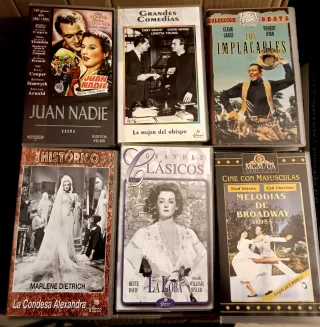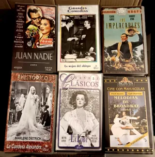 Lote de 6 películas en formato VHS, clásicos del cine. - Juan Nadie (Drama) - La Mujer del Obispo (Grandes Comedias) - Los Implacables (Colección Oeste) - La Condesa Alexandra (Cine Histórico) - La Loba (Grandes Clásicos) - Melodías de Broadway 1955 (Cine con Mayúsculas)