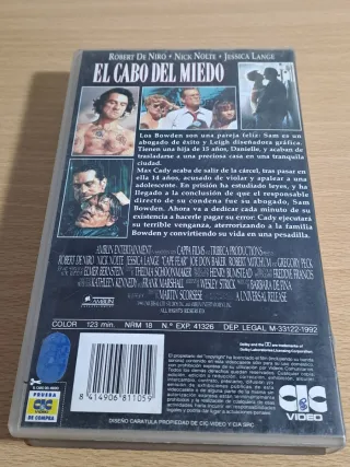 Película El Cabo del Miedo en formato VHS. - Protagonizada por Robert De Niro, Nick Nolte y Jessica Lange. - Dirigida por Martin Scorsese. - Género: Crimen, Suspense, Thriller.