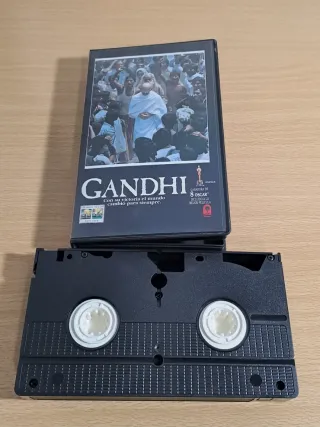 Película Gandhi en formato VHS. Ganadora de 8 premios Oscar, incluyendo Mejor Película. - Con su victoria el mundo cambió para siempre. - Incluye el logo de Columbia Tristar Home Video.