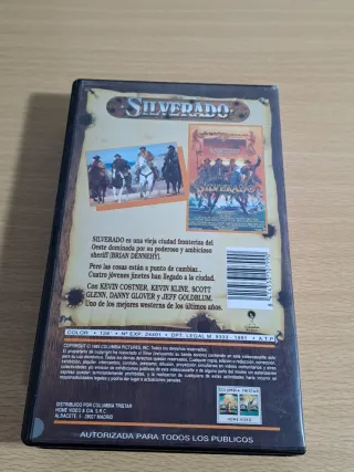 Película clásica del oeste Silverado en formato VHS. - Protagonizada por Kevin Kline, Scott Glenn, Danny Glover y Linda Hunt. - Dirigida por Lawrence Kasdan. - Edición de Columbia Pictures.