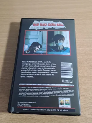 Película Single White Female en formato VHS. Un thriller de suspense. - Título en español: Mujer Blanca Soltera Busca... - Protagonizada por Bridget Fonda y Jennifer Jason Leigh. - Incluye audio en inglés y español.