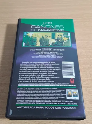 Película clásica Los Cañones de Navarone en formato VHS. - Ganadora de 1 Oscar. - Edición en español.