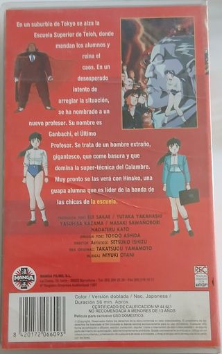 Cinta VHS de anime. - Incluye la película "Último Profesor" (Ultimate Teacher). - Doblada al español y japonés. - Edición en buen estado, ideal para coleccionistas.