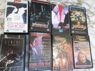 Colección de 8 películas en formato VHS, ideales para los amantes del cine. - Ghost (Más allá del amor) - Terminator 2: El Juicio Final - Jumanji - Atracción Fatal - Aliens: El Regreso - Demolition Man - Regreso al Futuro III - Grandes Relatos: El Conde de Montecristo