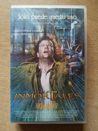 Película Los Inmortales (Highlander) en formato VHS. Original videoclub. No hago reservas el primero que la compre se la lleva - Título original: Highlander. - Incluye canciones y música de Queen. - Protagonizada por Christopher Lambert y Sean Connery. Se hacen envíos convinados por varios artículos. Pago por wallapop.