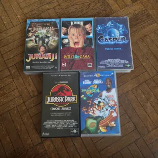 Colección de 5 películas clásicas en formato VHS de los años 90. - Jumanji - Solo en Casa - Casper - Jurassic Park - Space Jam