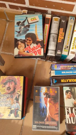 Colección de cintas VHS de películas de acción y aventura. Llevan años sin ponerse así que desconozco el estado. Se vende paquete completo al mejor postor. - El Marginal - El Genio del Kung Fu - La Furia de Shaolin - China Connection - El Exterminador de Oro - Ninja Killer - La Torre Sombría - Aniquilator - Soldado Azul - Angels Bedu Mission - Mi Gran Amigo Joe