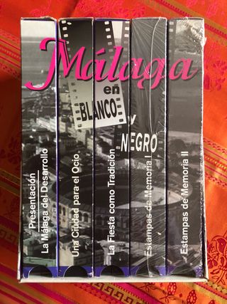 Conjunto de cintas VHS sobre Málaga en blanco y negro. - Presentación - La Málaga del Desarrollo - Una Ciudad para el Ocio - La Fiesta como Tradición - Estampas de Memoria I - Estampas de Memoria II