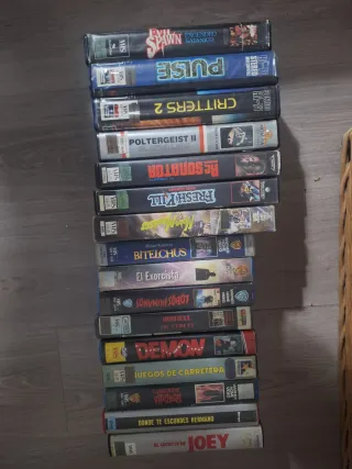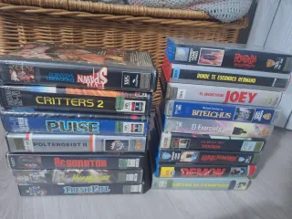 Colección de películas en formato VHS. Incluye una gran variedad de géneros y títulos. Preguntar precios de cada una. - Formato: VHS - Idioma: Español (principalmente) - Géneros: Acción, Aventura, Terror, Comedia, Drama, Ciencia Ficción, y más.