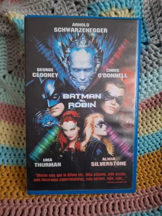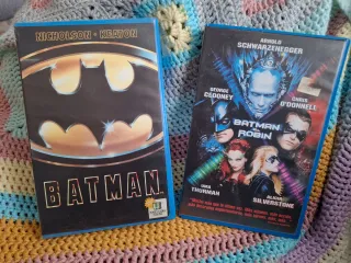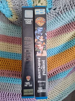 Se venden dos películas de Batman en formato VHS - Batman (1989) con Michael Keaton y Jack Nicholson. - Batman y Robin (1997) con George Clooney y Arnold Schwarzenegger.