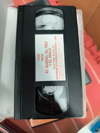 Película El Bueno, El Feo y El Malo en formato VHS. - Dirigida por Sergio Leone. - Música de Ennio Morricone. - Protagonizada por Clint Eastwood, Eli Wallach y Lee Van Cleef. - Incluye Technicolor y Techniscope.